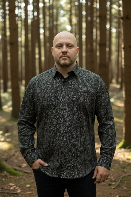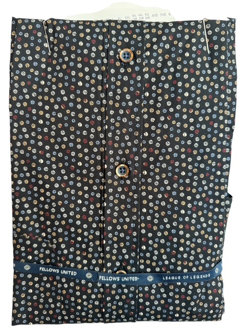 Een modern overhemd lange mouw van het label Fellows United in de kleur zwart met 3D print ( dot patroon ) hemd is voorzien van een borstzakje.