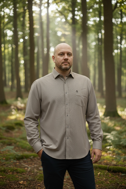 Een modern overhemd lange mouw van het merk Fellows United in de kleur bruin/ blauw, hemd is voorzien van een borstzakje.