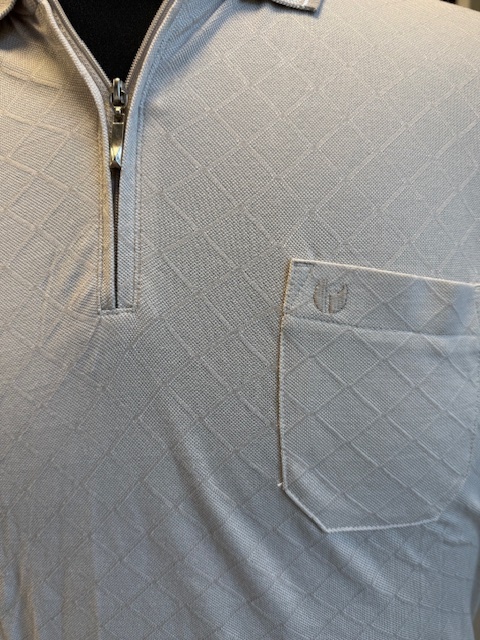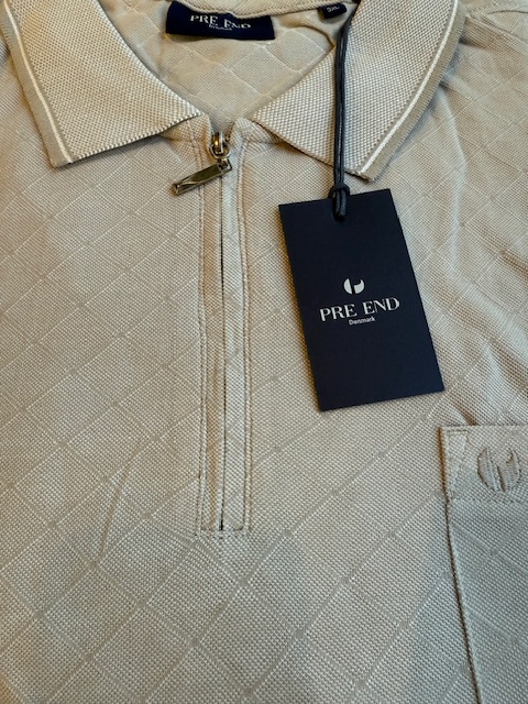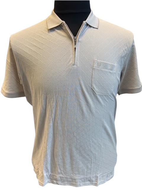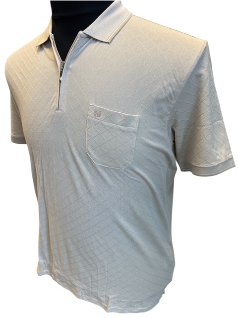 Een sportieve klassieke polo korte mouw met honing graad motief in de kleur ultra light sand, polo is voorzien van een borstzakje en rits sluiting.