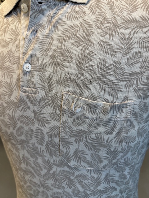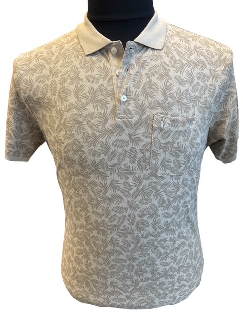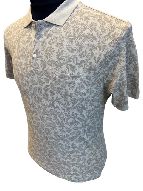 Een zomerse polo in de kleur ultra light sand met planten motief, polo is van het merk Pre End, en is voorzien van een borstzakje.