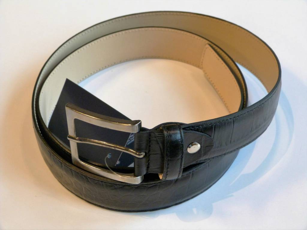 Een zwart kleurige riem van het merk Maxfort, is een smalle uitvoering geschikt voor pantalon broeken.