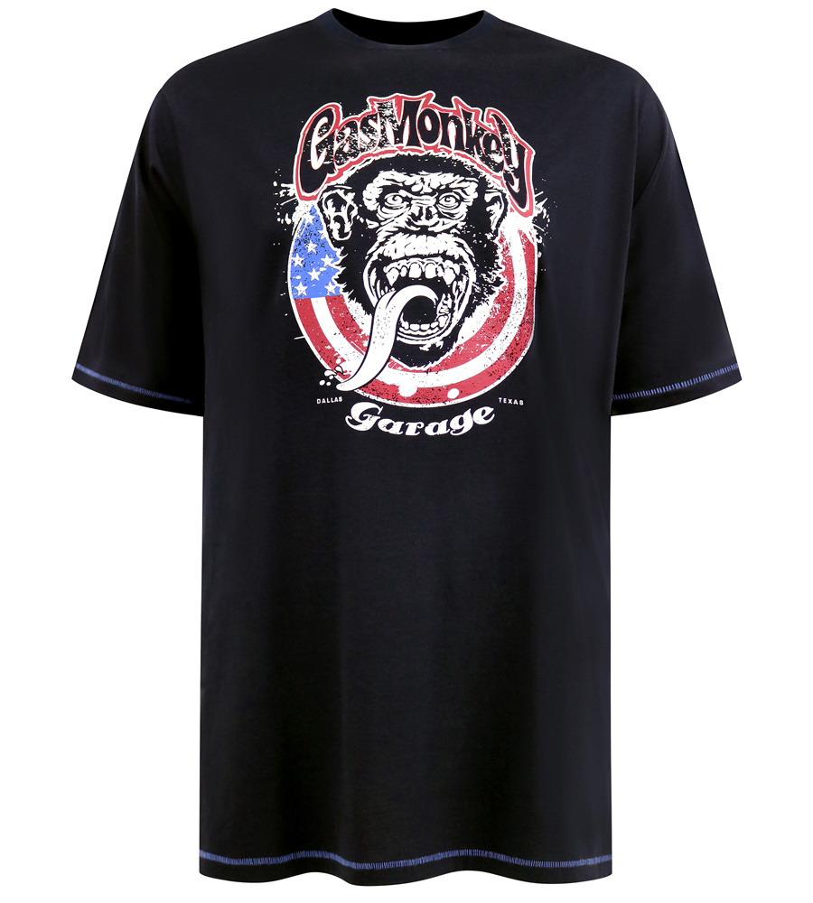 Een stoer t-shirt van het label D555 met opdruk ( Gas Monkey ) in de kleur Navy.