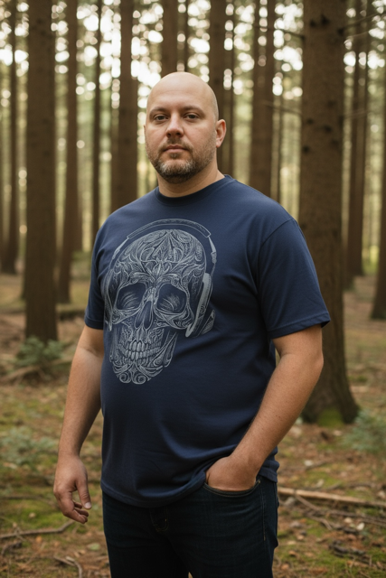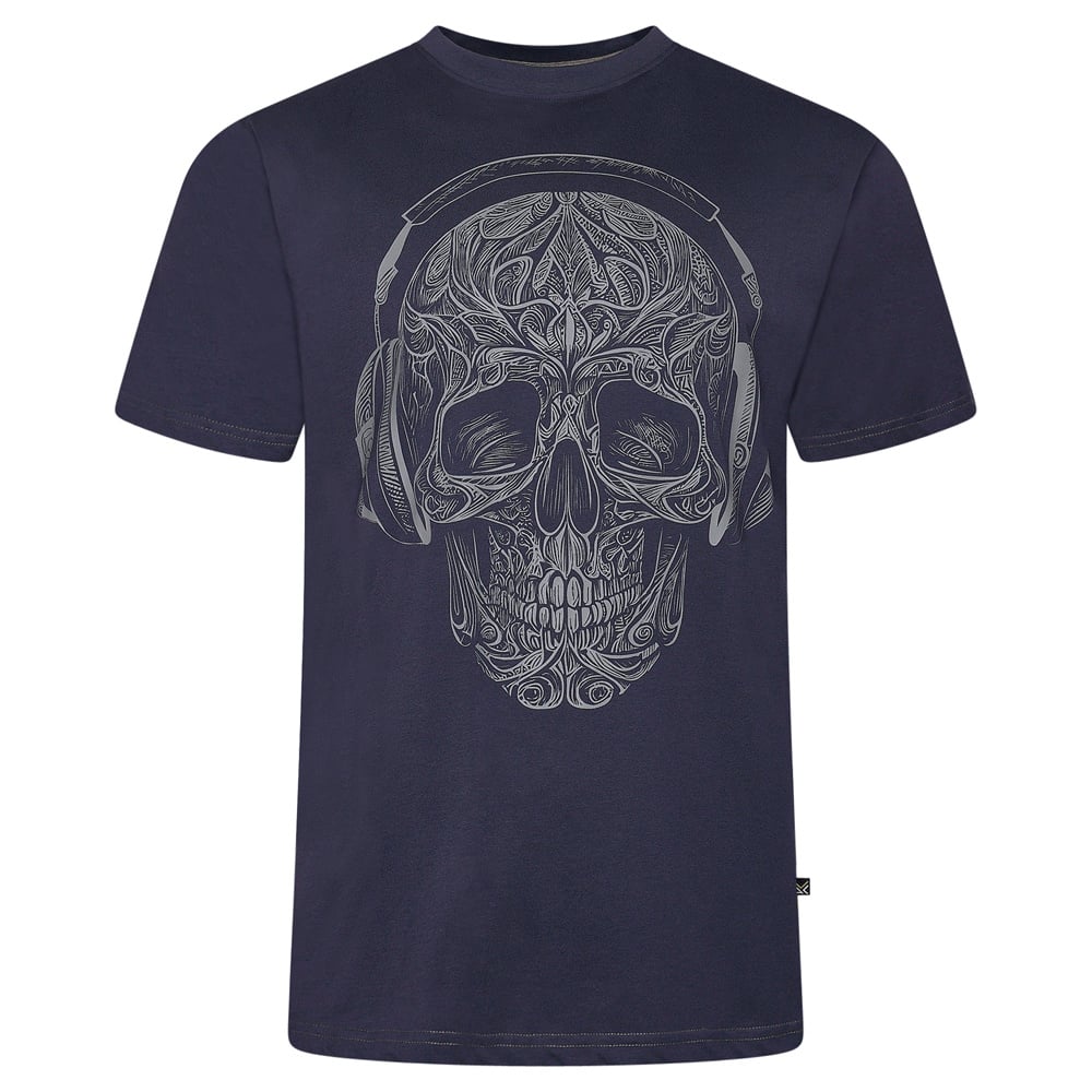 Een stoer T-shirt van het label KamJeansWear in de kleur night blue met opdruk " Crackle Skull "