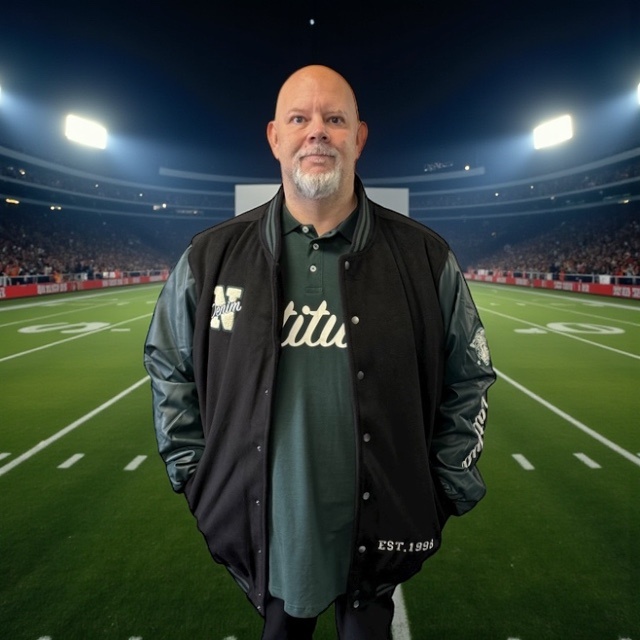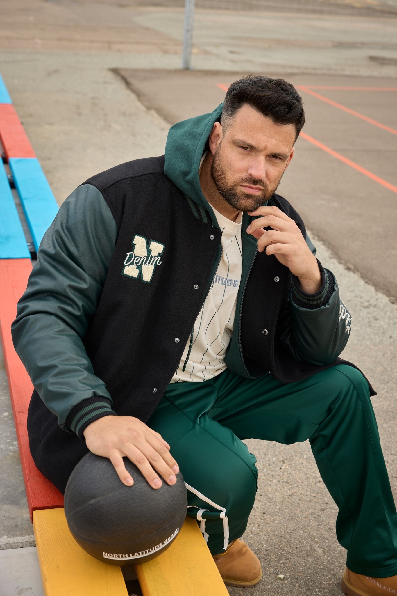 Klassiek collegejack met wollook en mouwen van imitatieleer. Comfortabel, gevoerd en gedetailleerd met borduursels en applicaties.
