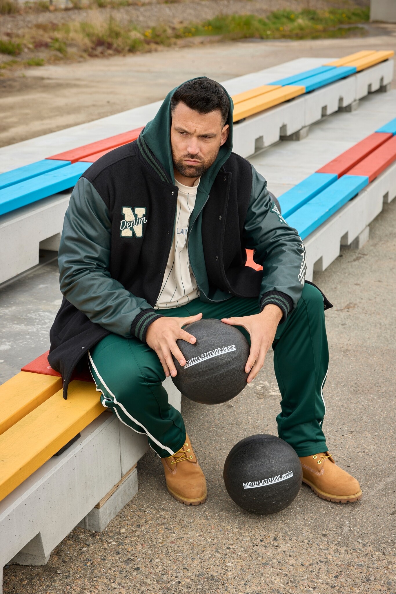 Klassiek collegejack met wollook en mouwen van imitatieleer. Comfortabel, gevoerd en gedetailleerd met borduursels en applicaties.